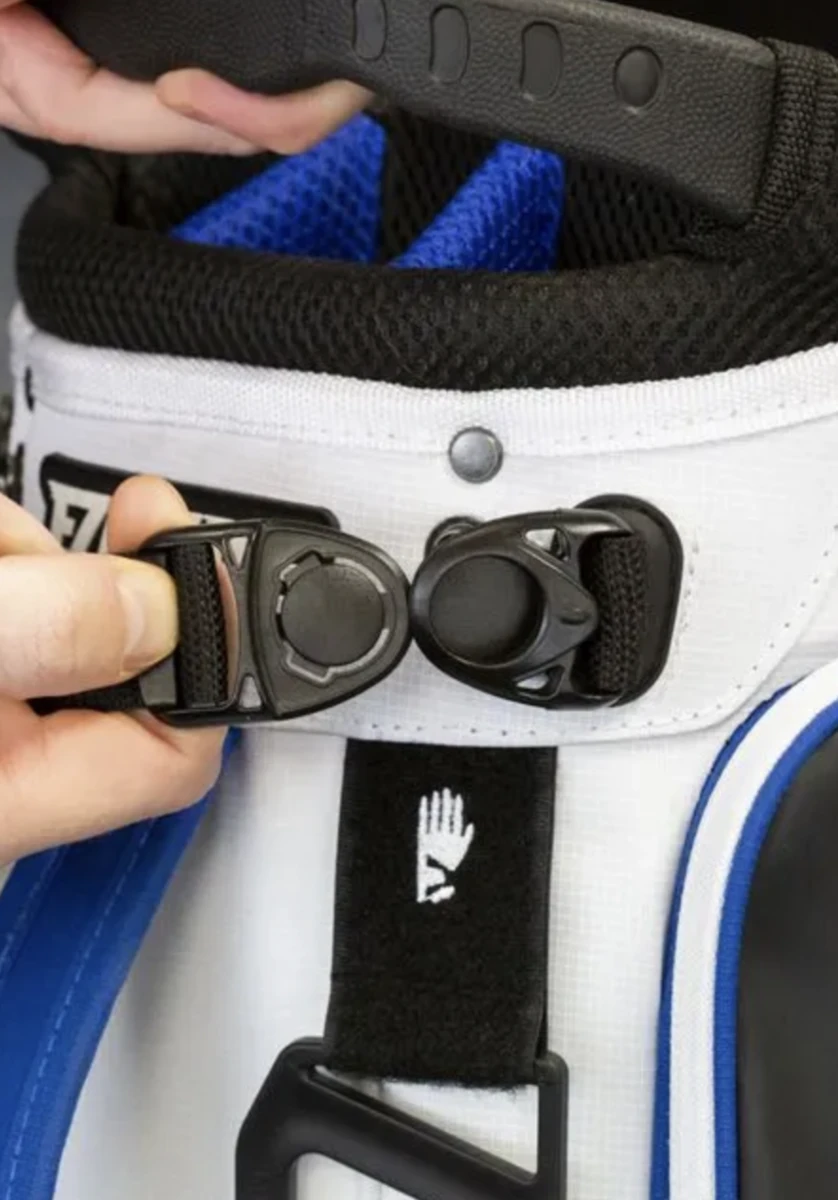 Eze Glide 74 Stand Bag is a Hybrid 14 way premium bag that offers versatility for trolley use as well as a carry stand bag. Featuring an 14 way divider with 7 pockets ranging from a fleece lined valuables pocket to large apparel pocket, the Hybrid Stand Bag has everything you need to store all your golfing essentials in a premium design.