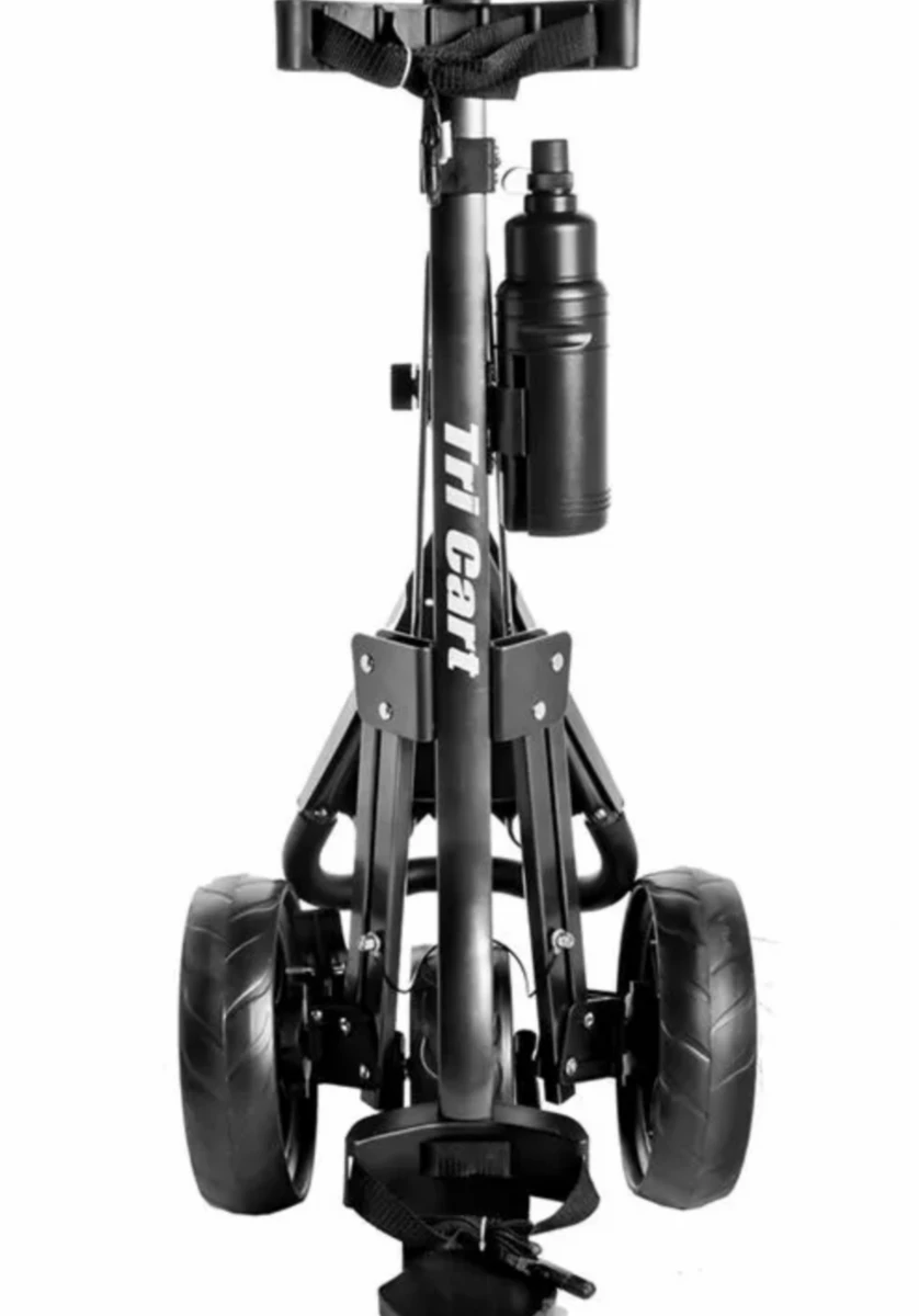 The Tri Cart utilizes the latest three wheel cart technology. With adjustable handle height, a soft grip handle and room to store golf accessories the Tri-Cart is designed to be practical and easy to use, and with its large ball bearing wheels it will easily glide over any terrain.